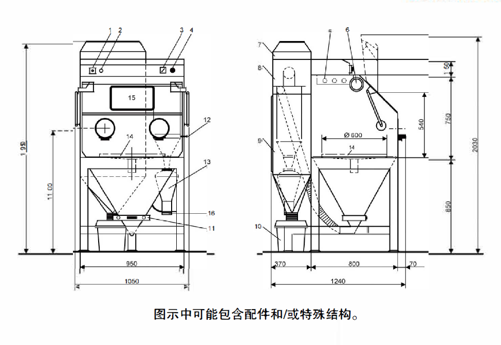 • 自動(dòng)壓力噴砂罐, 通過腳踏開關(guān)觸動(dòng)操作